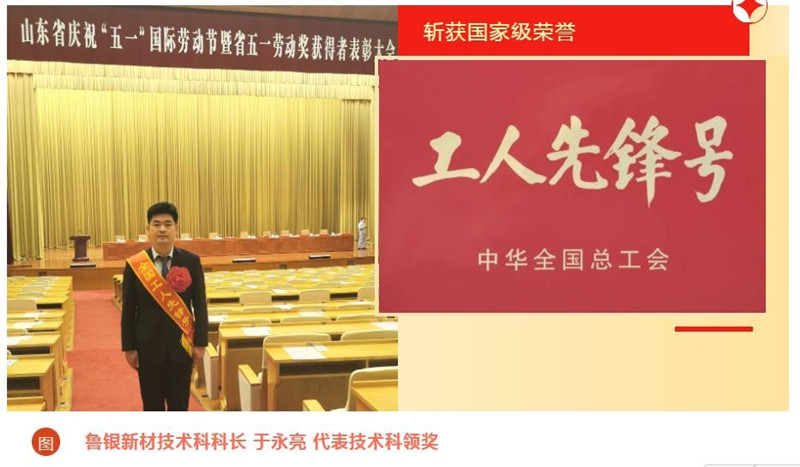 4月30日,山东省总工会在山东大厦召开山东省庆祝“五一”国际劳动节暨省五一劳动奖获得者表彰大会,山东国惠所属鲁银投资鲁银新材技术科荣获 “全国工人先锋号”称号。