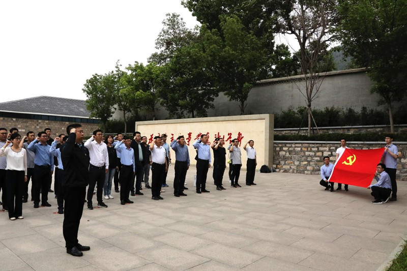 在大峰山党性教育基地,全体党员先后参观了革命根据地纪念馆、革命根据地老馆等地,通过一幅幅珍贵图片、一件件历史遗物、一段段英勇事迹,详细了解了大峰山革命根据地从无到有,从弱到强的发展历程和革命历史。通过纪念馆内“泉城播火、光照长清,国难当头、浴血奋战,同仇敌忾、共筑长城,坚如磐石、迎接曙光,奋起自卫、欢庆解放,遍地英雄,不朽丰碑”六部分的参观学习,大家切实体会到了革命先烈们的坚定理想信念以及对党无比忠诚、坚韧不拔的革命精神。随后,广大党员在初心广场重温入党誓词,以铮铮誓言牢记初心使命,坚定理想信念。