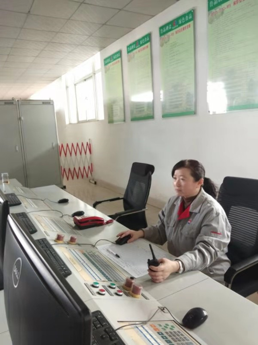 肥城盐厂制盐动力车间的田玲芝,身体前倾,左手对讲机,右手鼠标,紧盯电脑屏幕,多年的工作经验,让她可以根据画面上一个小小的指标变化,就能发现其中隐藏的风险,果断准确的进行处理。